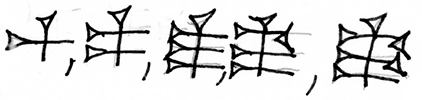 • From at least the middle Assyrian times, the number 9 (SIGNE4) can be abbreviated this way: SIGNE5.